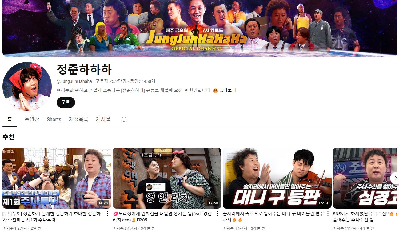 정준하는 현재 유튜브 채널 ‘정준하하하’를 운영하며 디지털 콘텐츠 제작자로서 새로운 모습을 보여주고 있습니다. 이 채널은 단순한 예능이 아니라, 그가 외식업 사업가로서 쌓아온 경험과 웃음을 한데 모은 공간입니다.